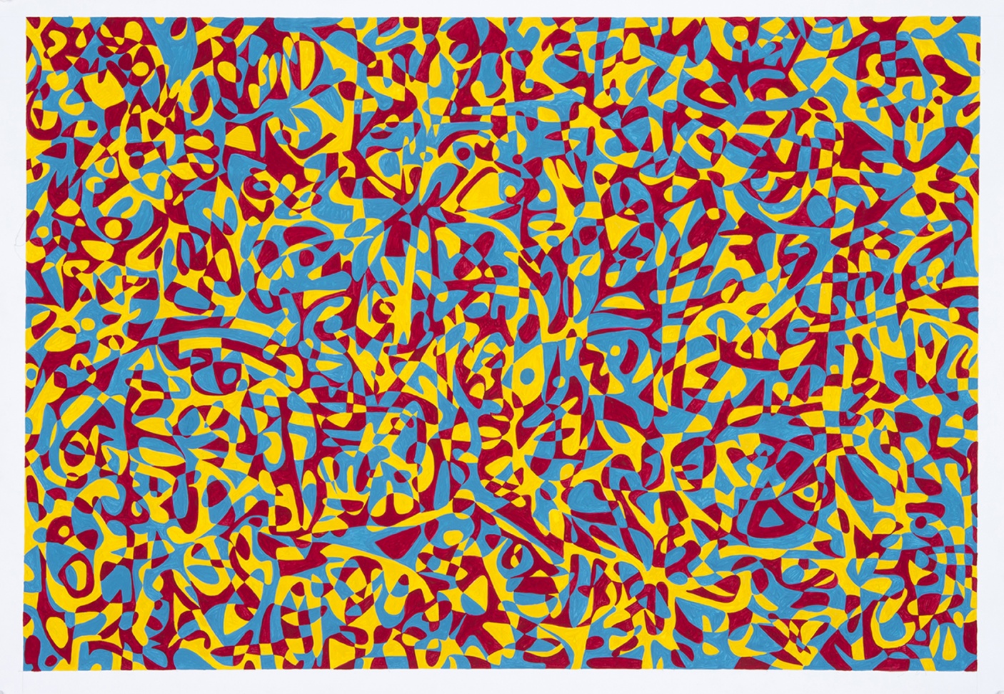 À travers mes peintures, l'art est nié ... labyrinthes, camouflages, puzzles ? Constructions mentales autonomes, elles m'ont un jour, sans crier gare, littéralement avalé et depuis, me digèrent. J'y vois l'expression des toiles de mon araignée au plafond, anarchiques comme le sont celles de l'araignée des caves, la Tegenaria atrica.
